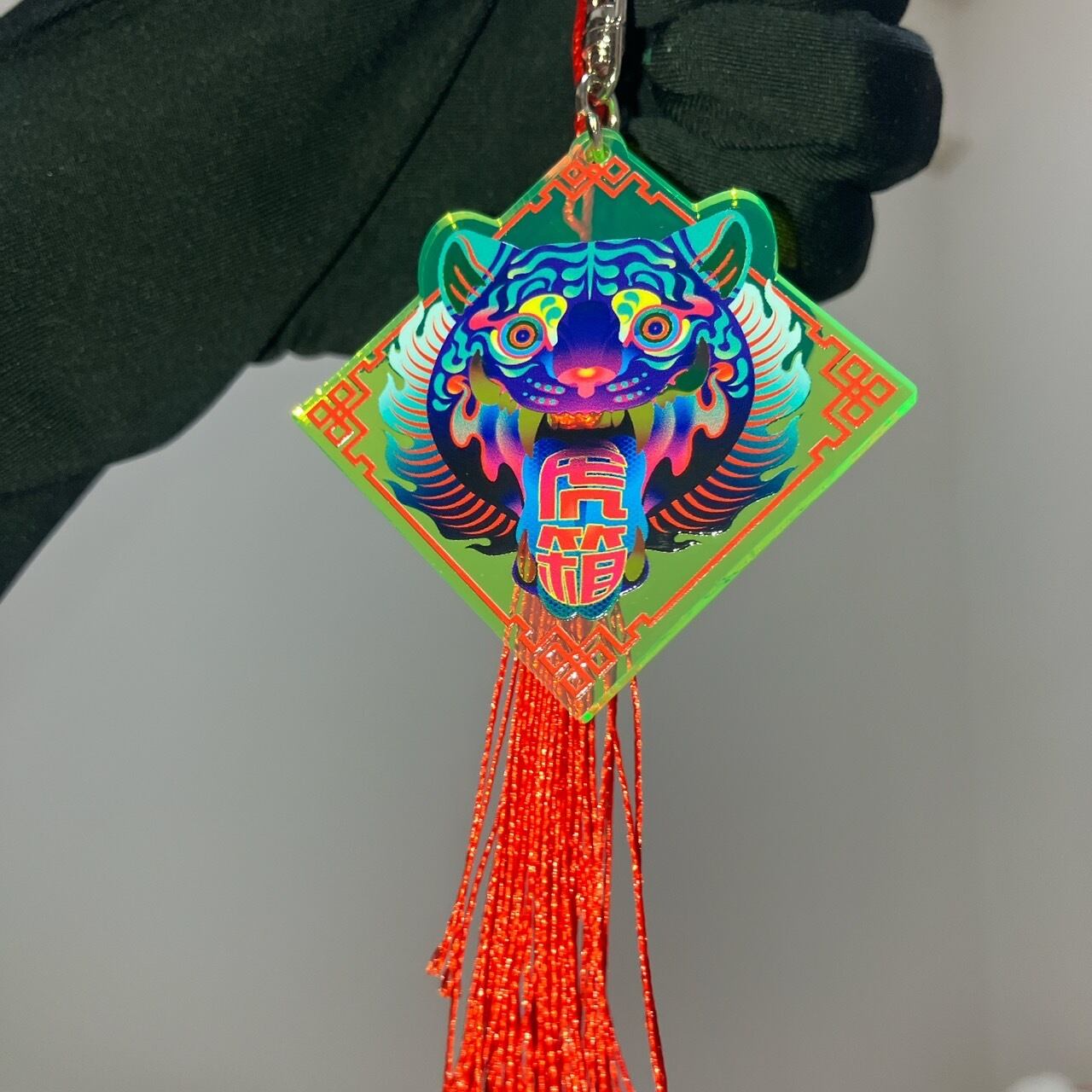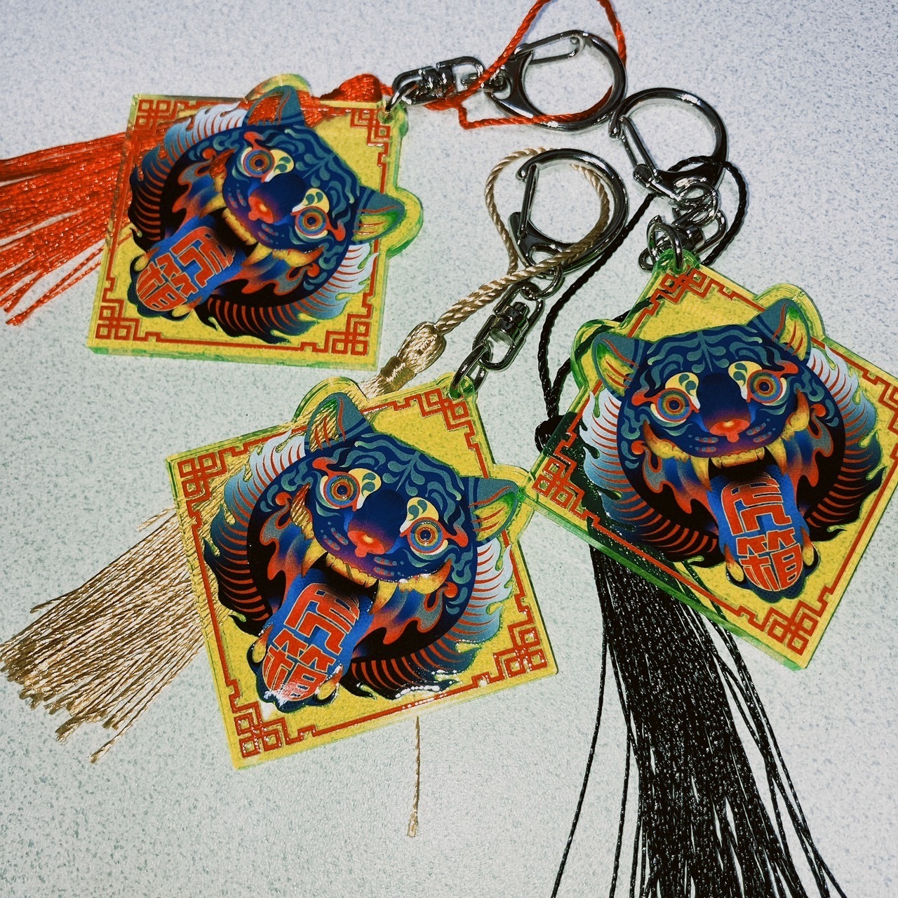 大きな虎が目を惹く蛍光グリーンのアクリルキーホルダー。 タッセルは基本ランダムですが、希望色がございましたら備考欄にご記載ください。 在庫がありましたらお送りさせていただきます。