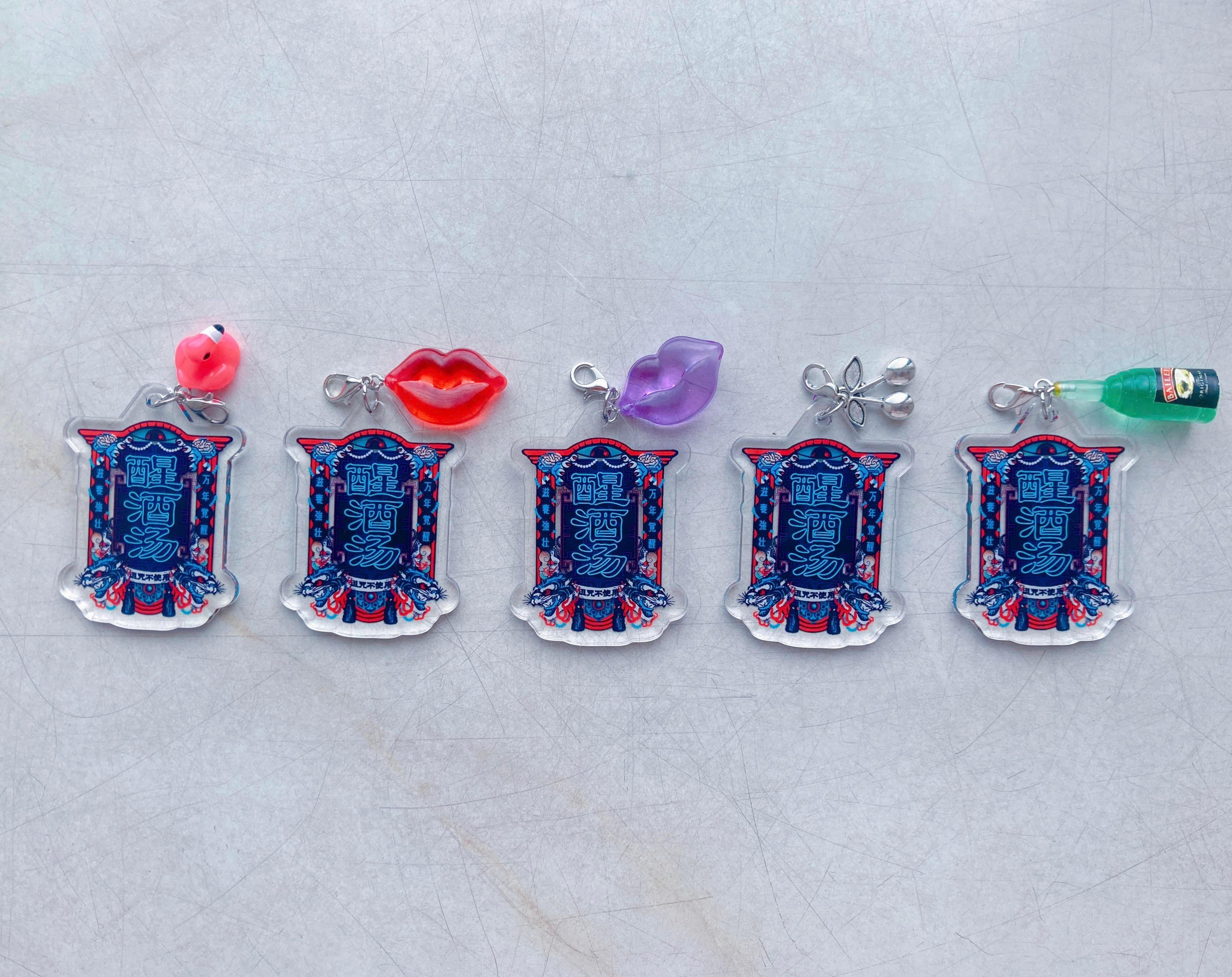 『脳を覚醒させる怪しい酒』をテーマにしたシャンパン風ドリンクに使用したパッケージを使用したチャームです。