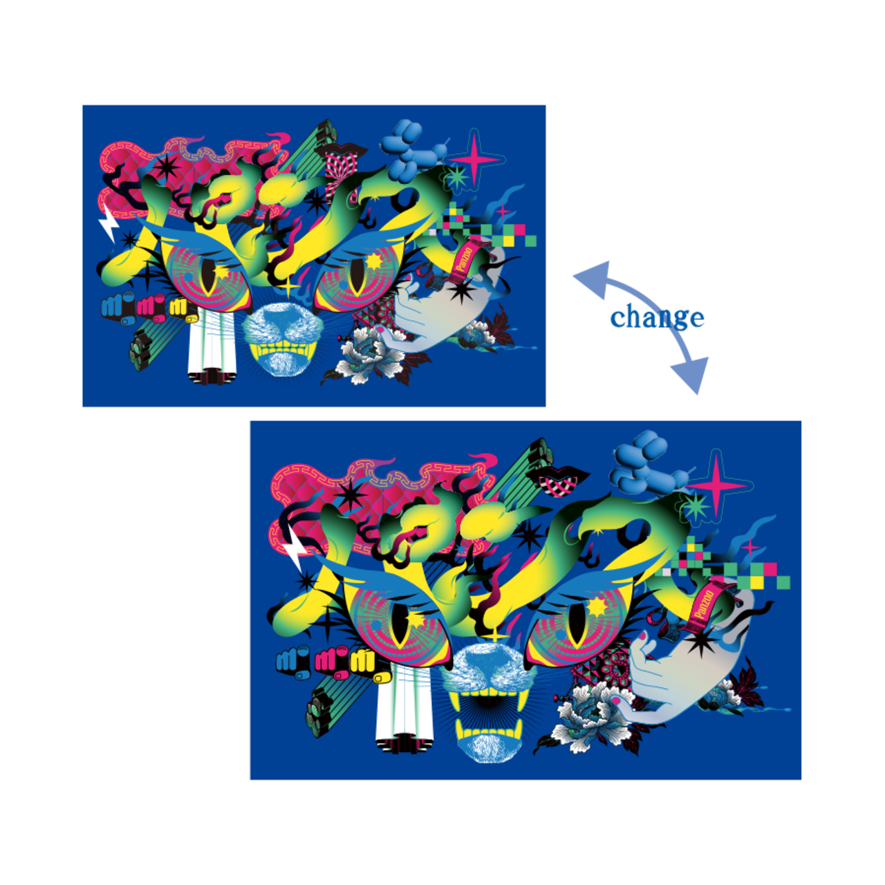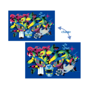 デザフェス62から販売開始したレンチキュラーステッカーです。 クセ強めのステッカーをお手元にいかがでしょうか? サイズ:幅80mm×高さ52mm アニメーション枚数:5枚