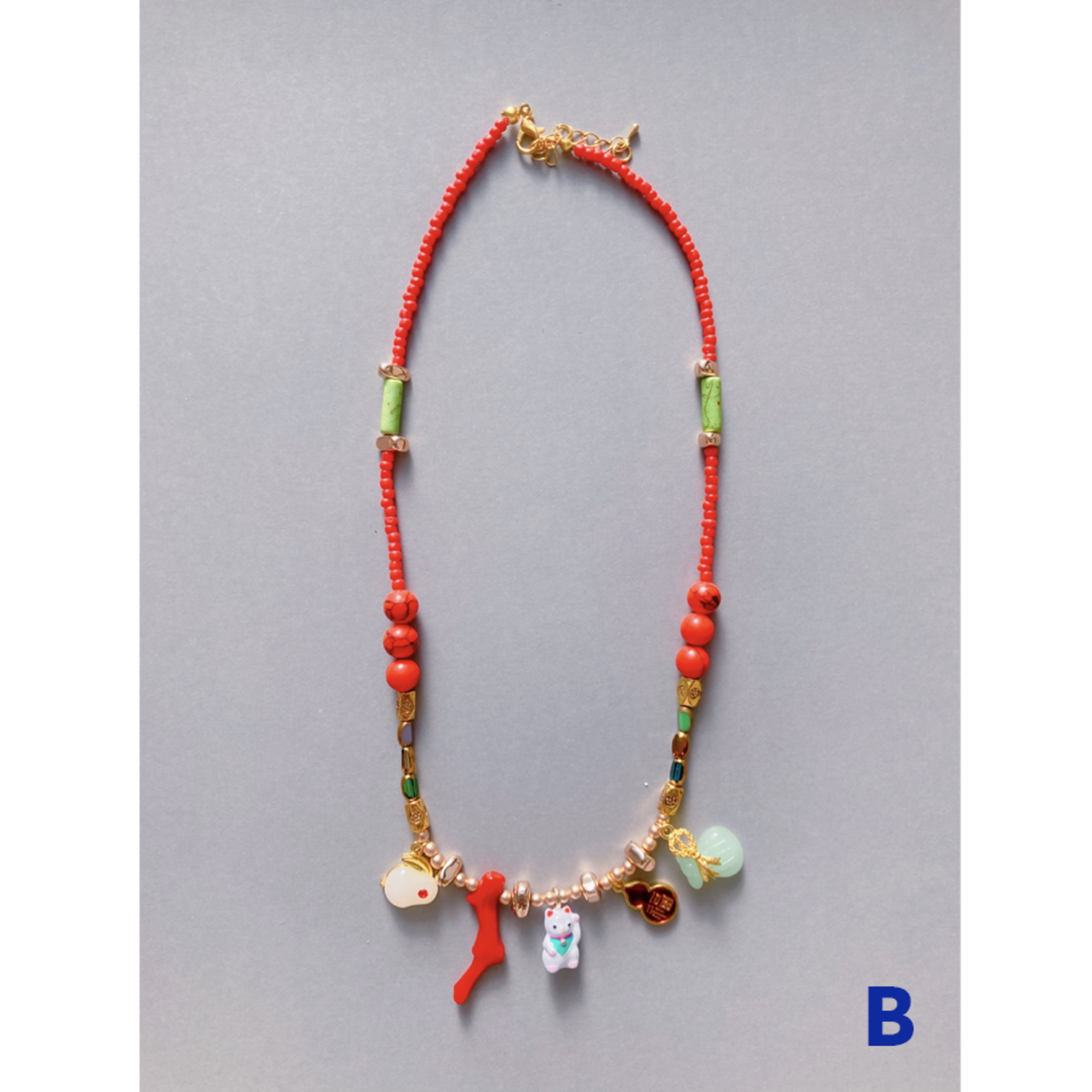 全て一点物の手作りネックレスです。 『I』のみ長めのネックレスです。
